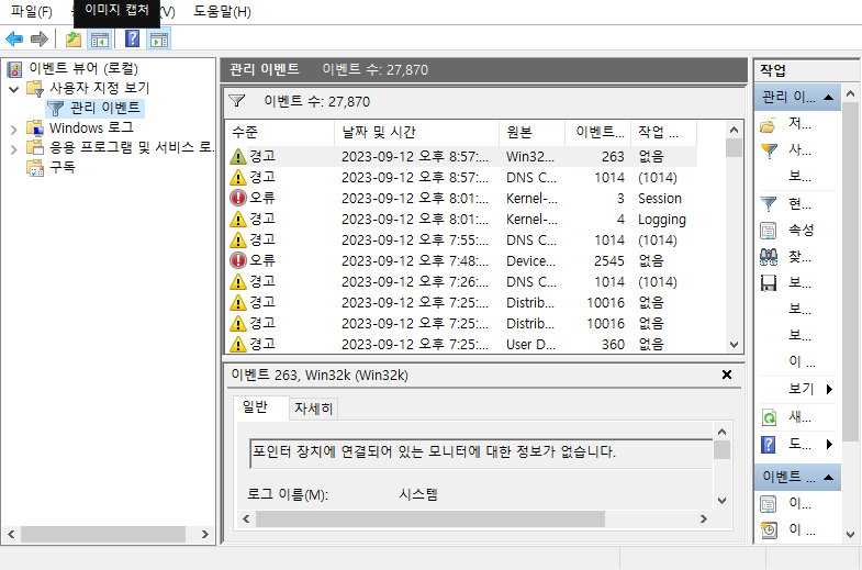 2. 마우스 오른쪽 버튼으로 '이벤트 뷰어' 선택